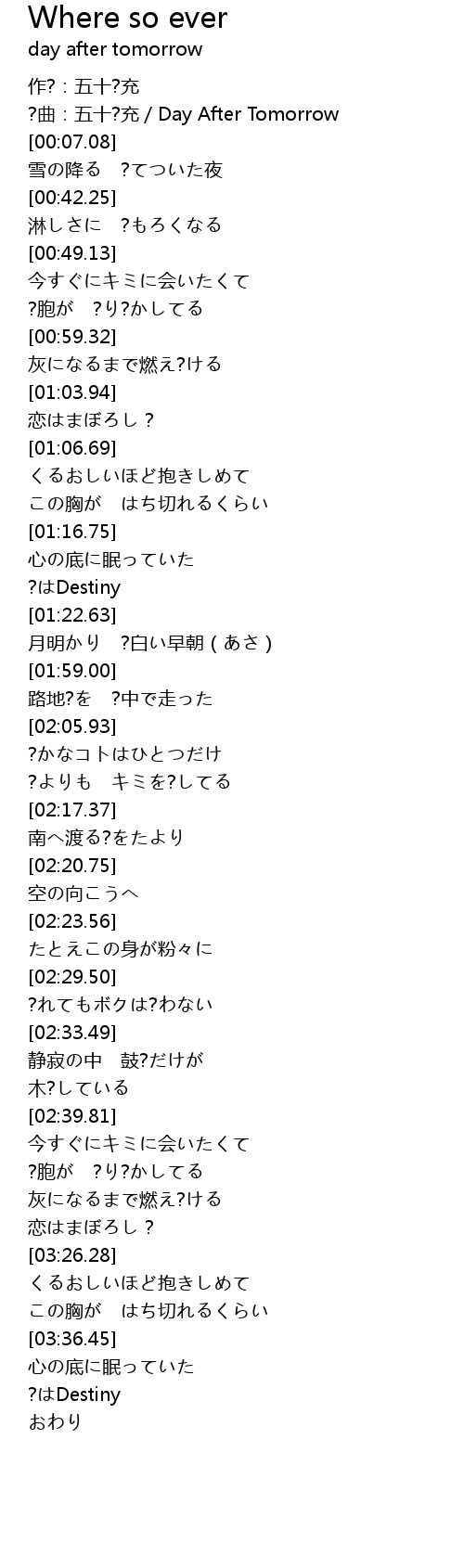 | [00:04.71] | ?曲:五十?充/Day After Tomorrow |
