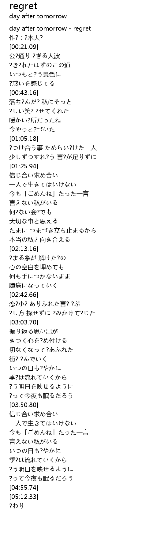 | [00:00.00] | day after tomorrow - regret |