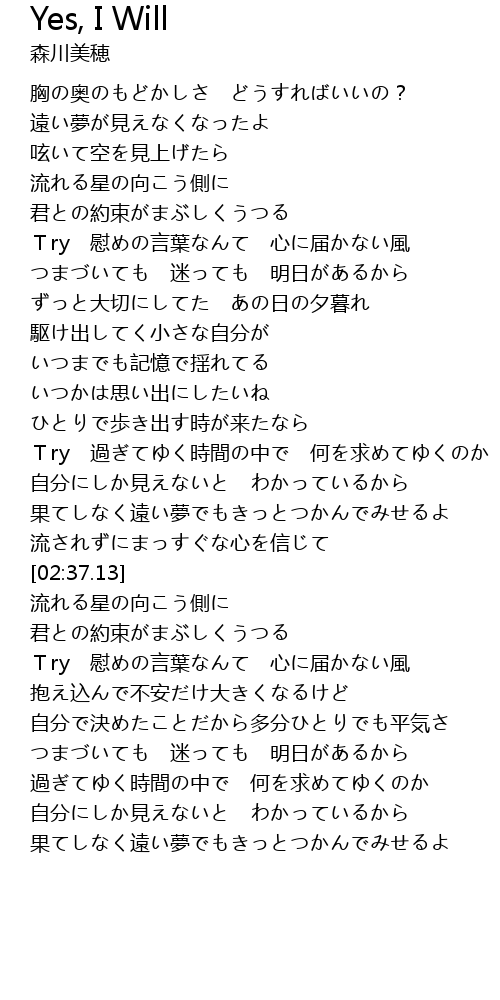 | [02:27.82] | 流されずにまっすぐな心を信じて |
