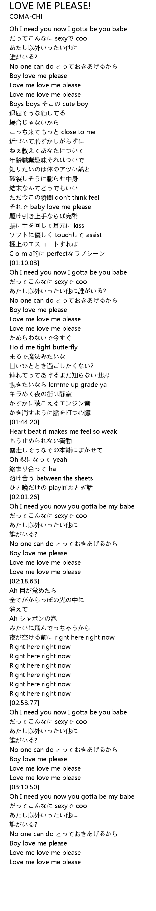 | [03:24.58] | Love me love me please |