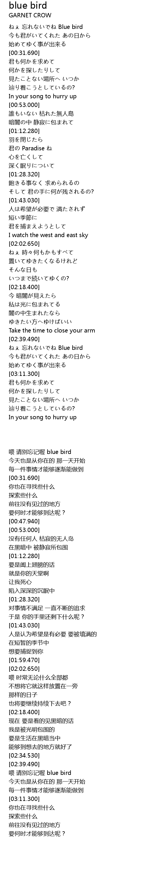 | [02:57.000] | ねぇ 忘れないでね Blue bird |