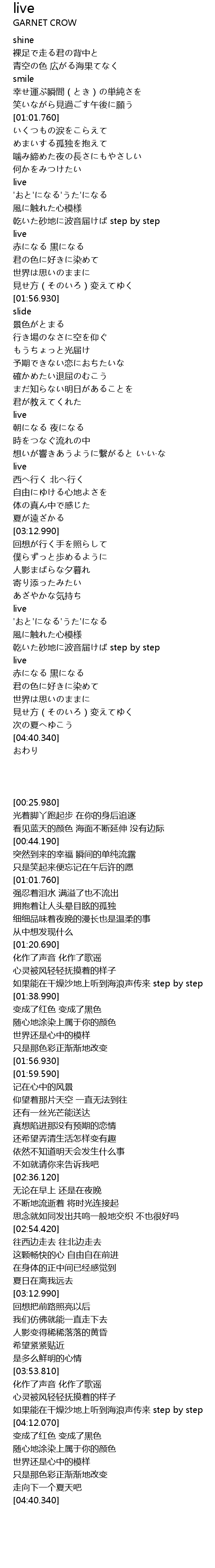 | [04:04.000] | 乾いた砂地に波音届けば step by step |