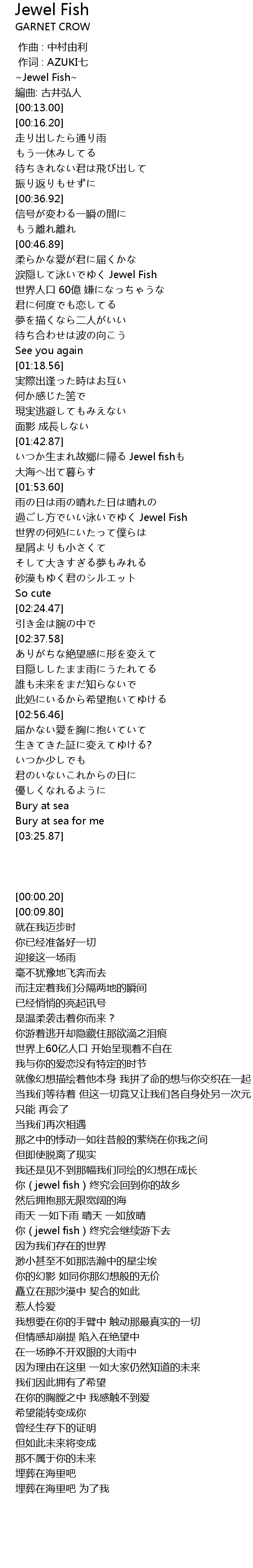 | [00:00.20] | Jewel Fish |