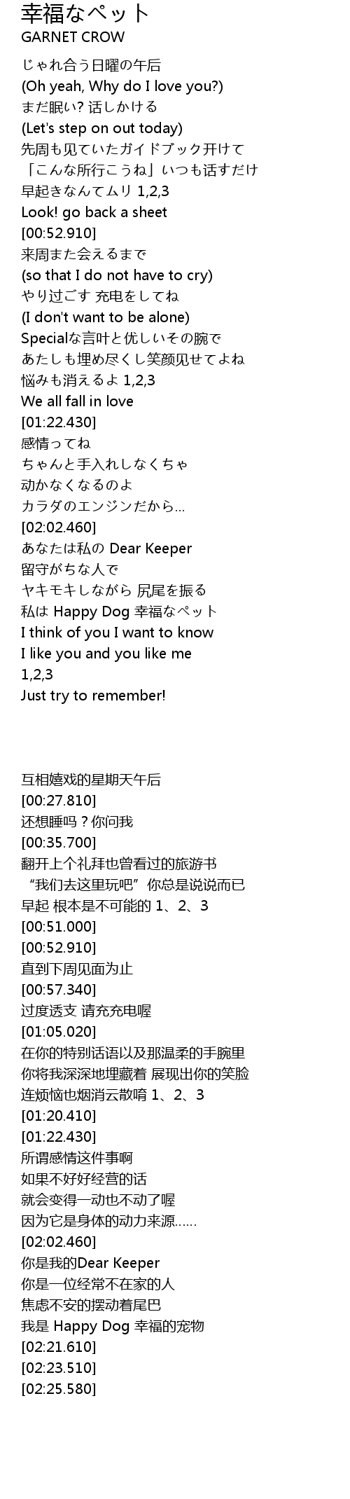 | [02:17.640] | 私は Happy Dog 幸福なペット |
