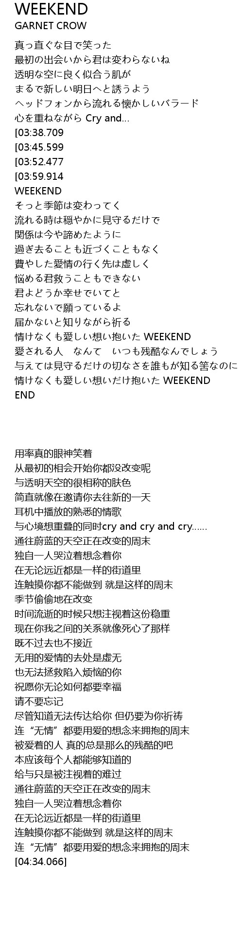| [02:40.973] | 情けなくも愛しい想い抱いた WEEKEND |