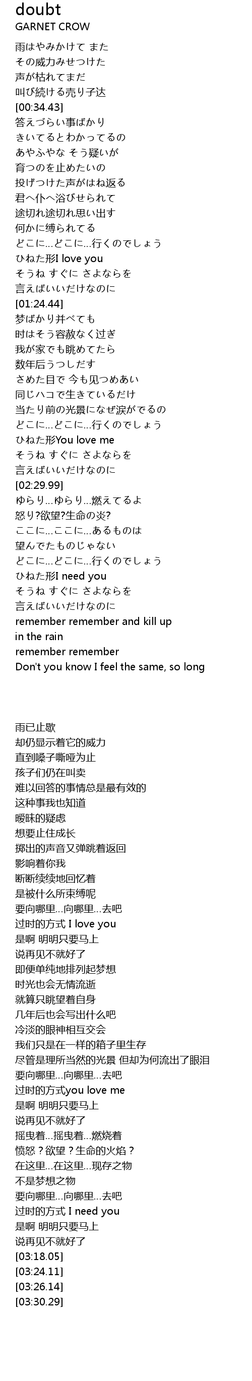 | [00:43.93] | あやふやな そう疑いが |