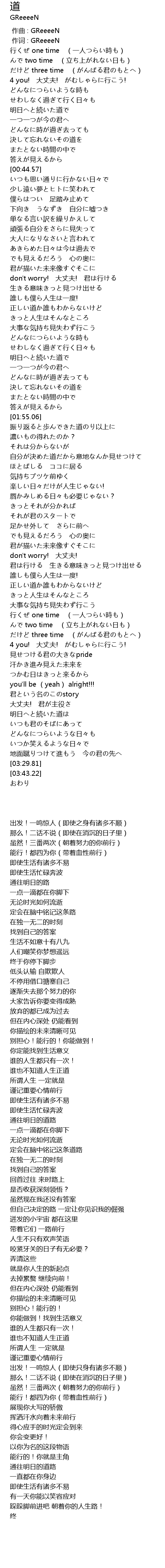 | [00:01.00] | 作词 : GReeeeN |