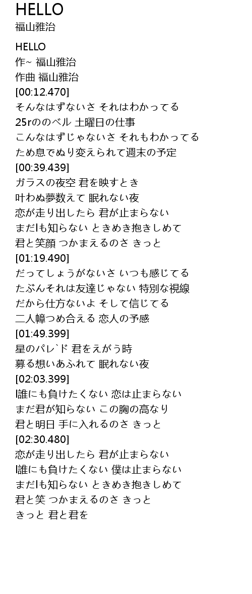 | [02:05.399] | l誰にも負けたくない 恋は止まらない |