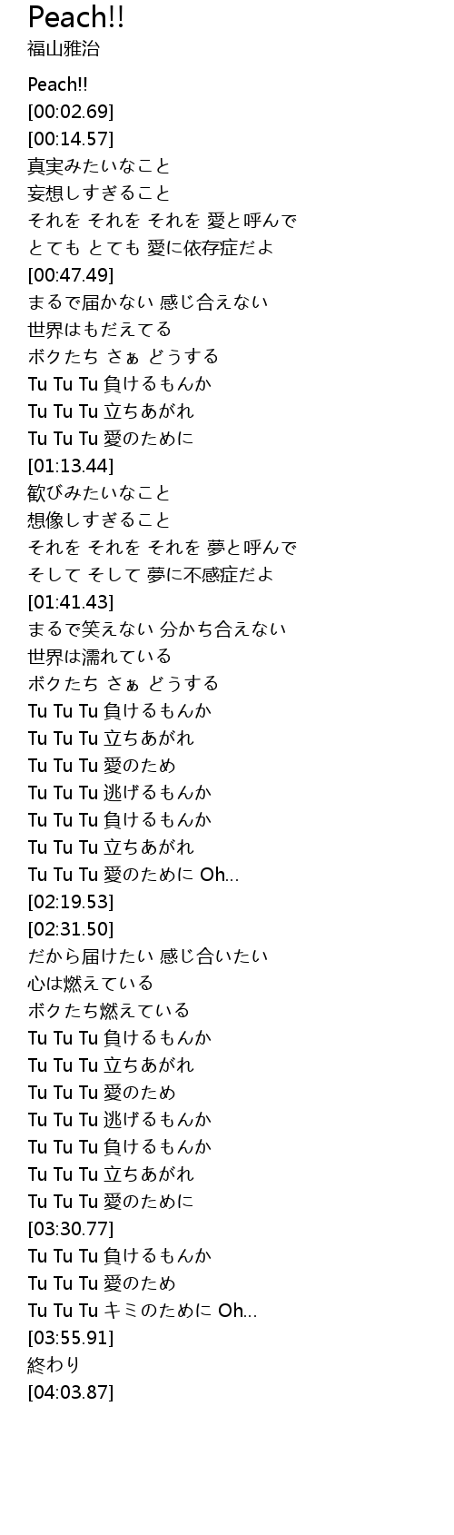 | [03:12.03] | Tu Tu Tu 立ちあがれ |