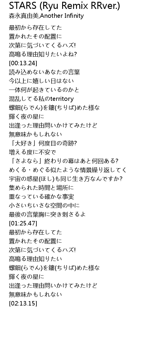 | 歌曲 | STARS (Ryu Remix RRver.) |