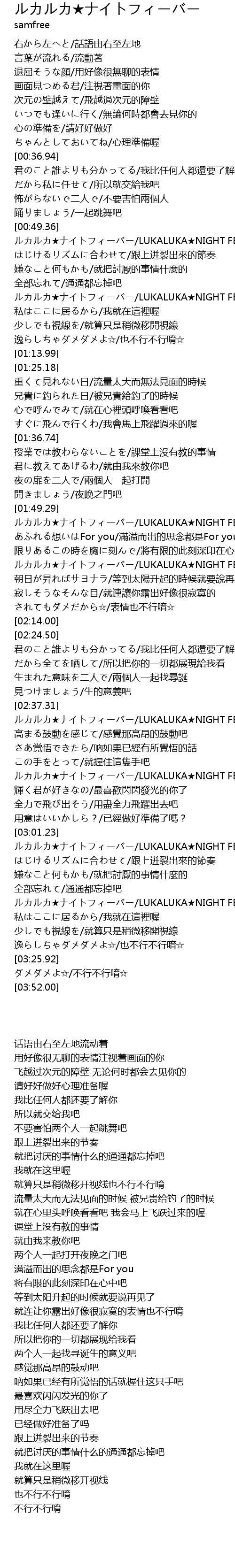 | [03:01.93] | ルカルカ★ナイトフィーバー/LUKALUKA★NIGHT FEVER |