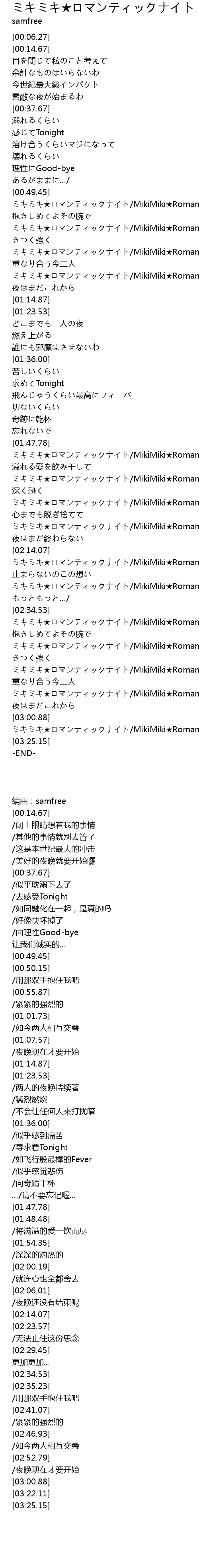 | [02:00.19] | MikiMiki RomanticNight |