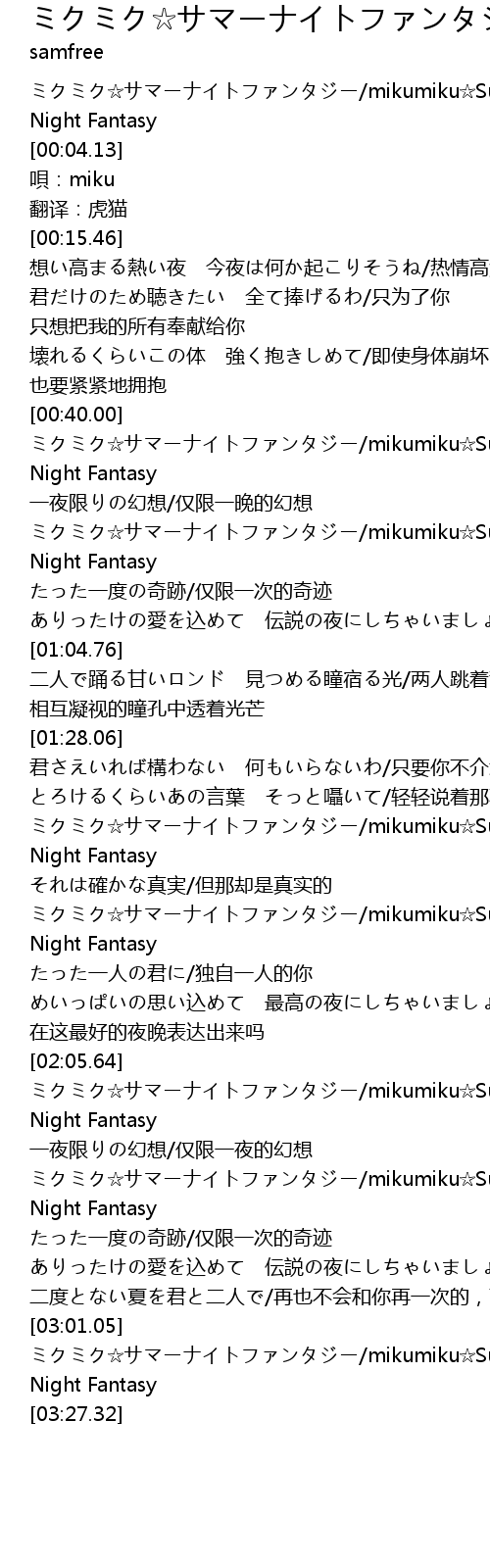 | [00:40.64] | mikumiku Summer Night Fantasy |
