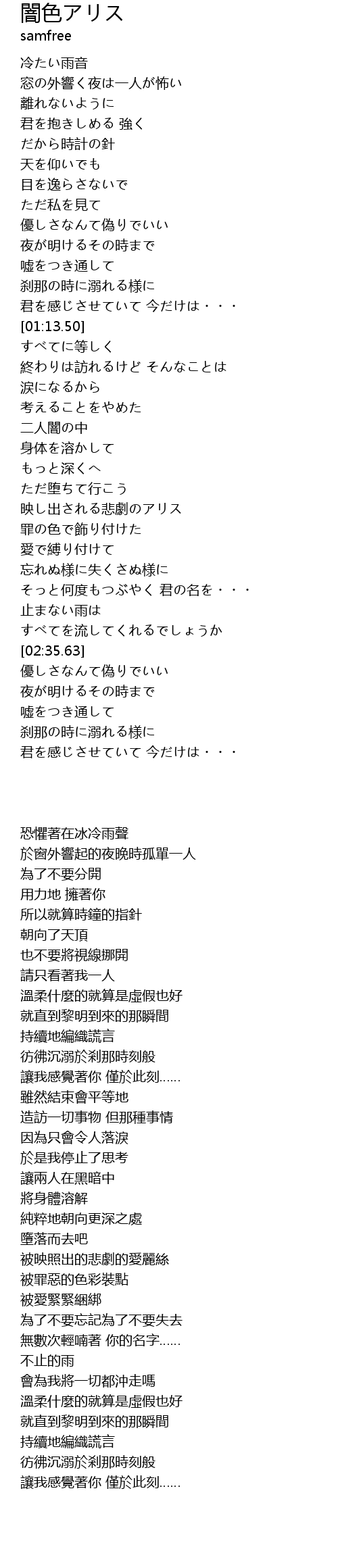 | [01:59.74] | 被映照出的悲劇的愛麗絲 |