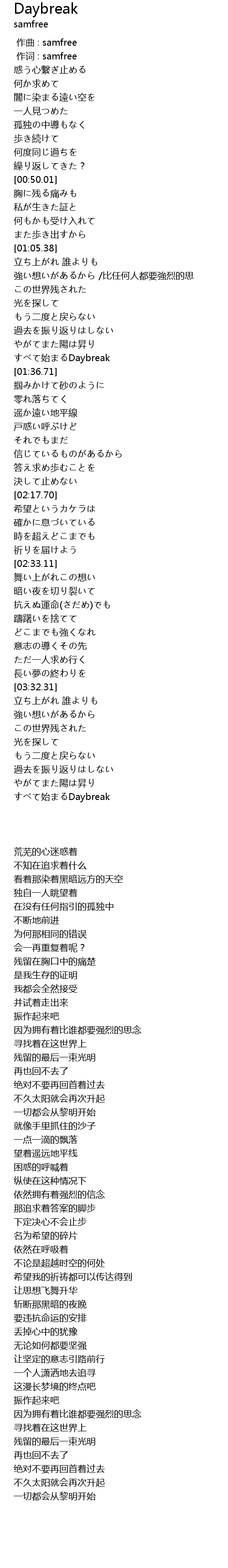 | [00:00.00] | 作曲 : samfree |