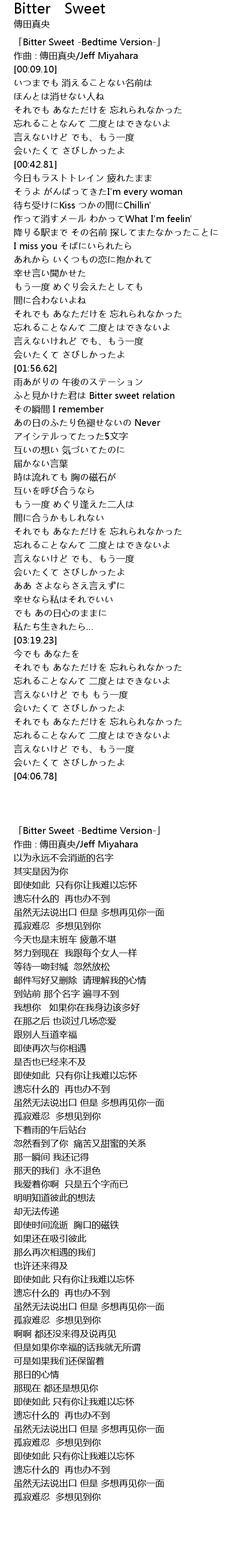 | [00:01.10] | Bitter Sweet Bedtime Version |
