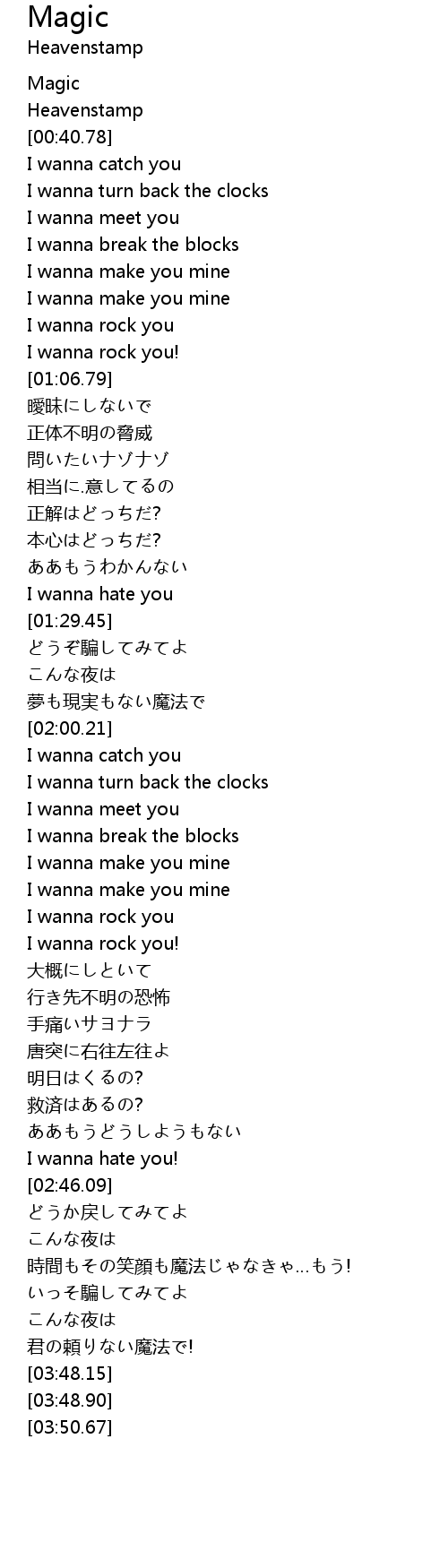 | [03:13.73] | 時間もその笑顔も魔法じゃなきゃ…もう! |
