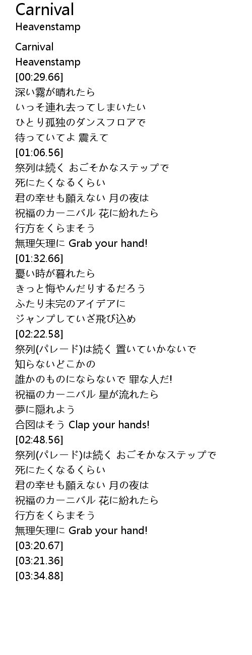 | [03:12.05] | 祝福のカーニバル 花に紛れたら |