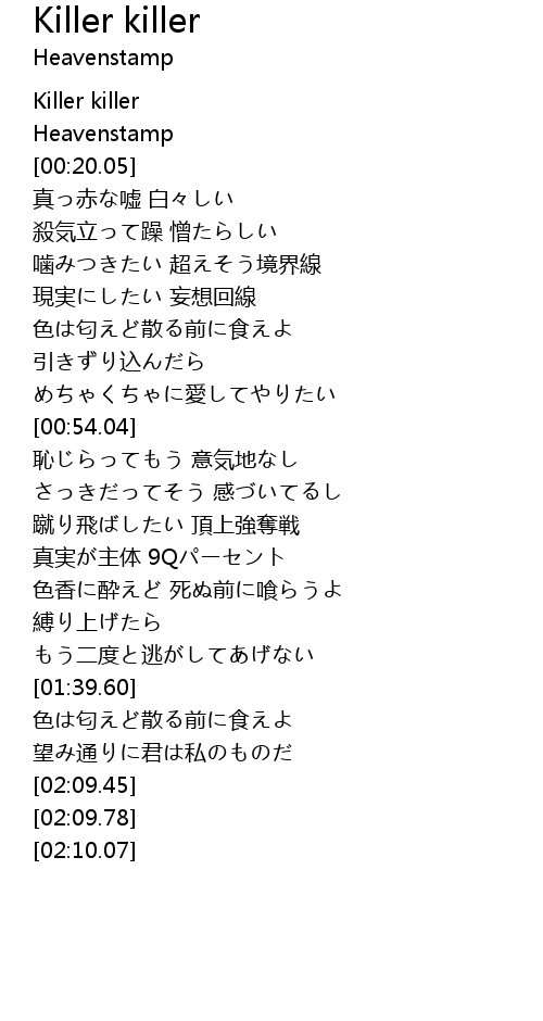 | [00:00.48] | Killer killer |