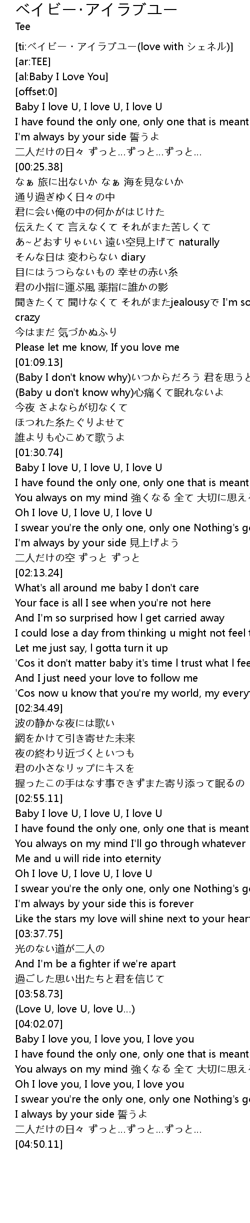 | [04:04.15] | Baby I love you, I love you, I love you |