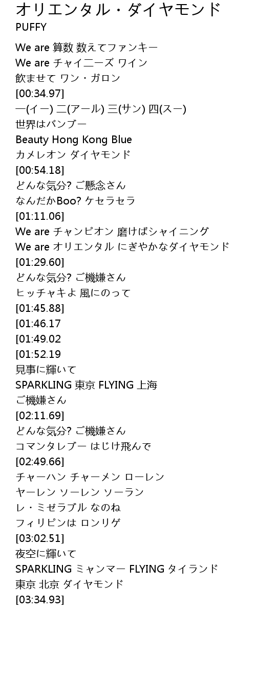 | [03:22.77] | 東京 北京 ダイヤモンド |