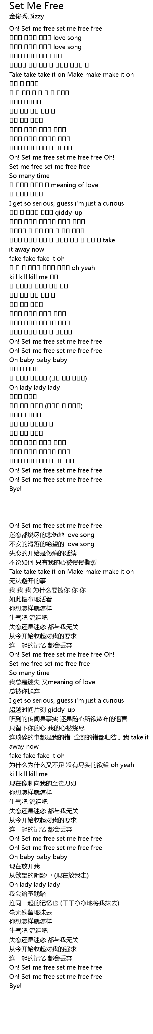 | [01:12.550] | Oh! Set me free set me free free Oh! |