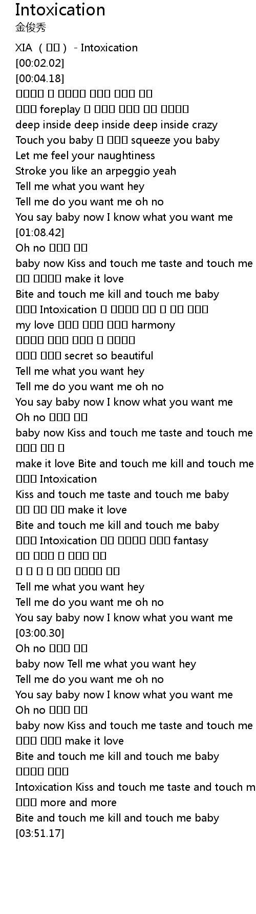 | [03:34.47] | Intoxication Kiss and touch me taste and touch me baby |