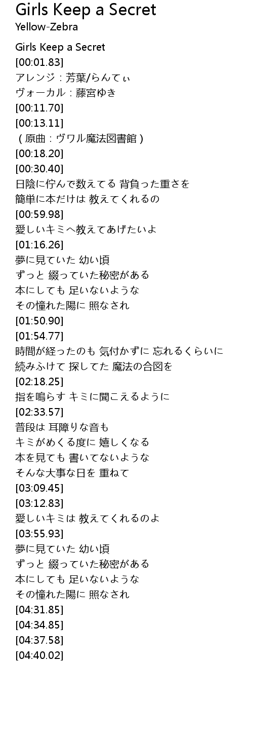 | [04:04.71] | ずっと 綴っていた秘密がある |