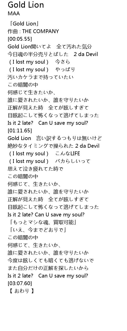 | [00:01.55] | 「Gold Lion」 |