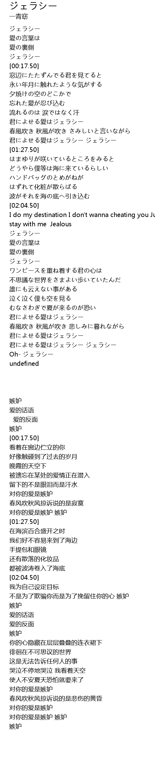 | [00:15.50] | ジェラシー |