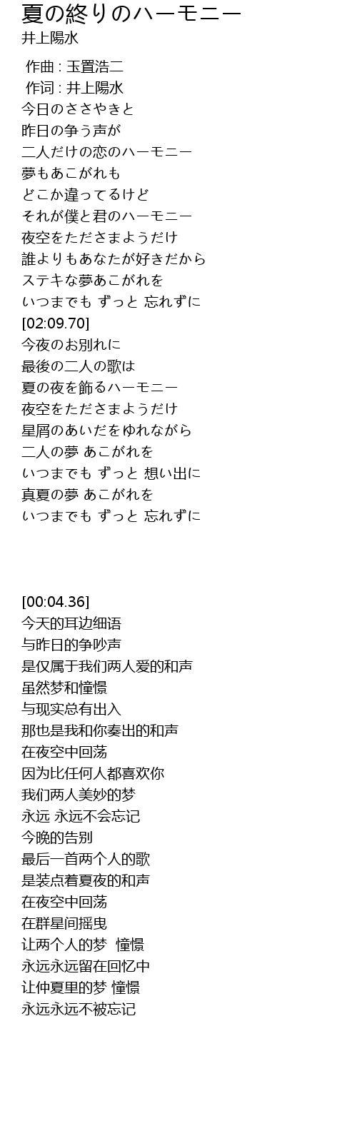 | [02:38.28] | 夏の夜を飾るハーモニー |