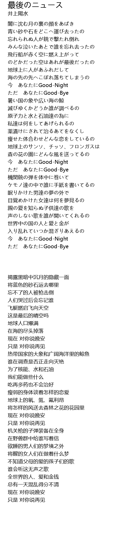 | 歌曲 | 最後のニュース |