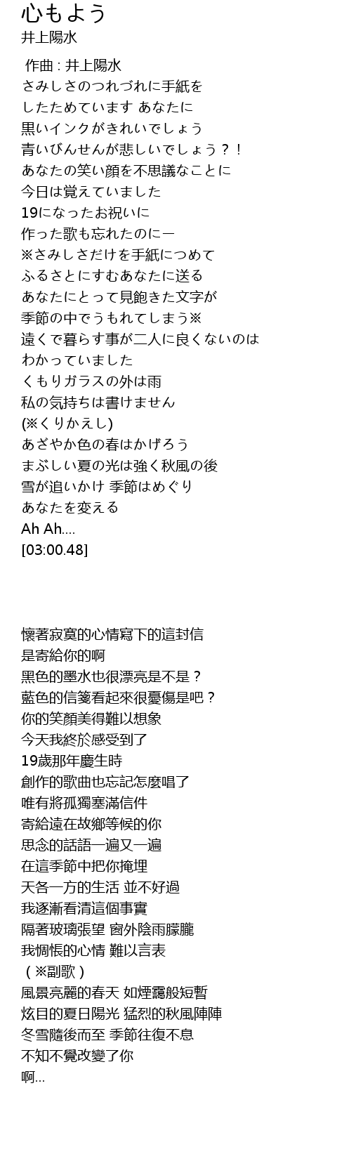 | [00:22.31] | したためています あなたに |
