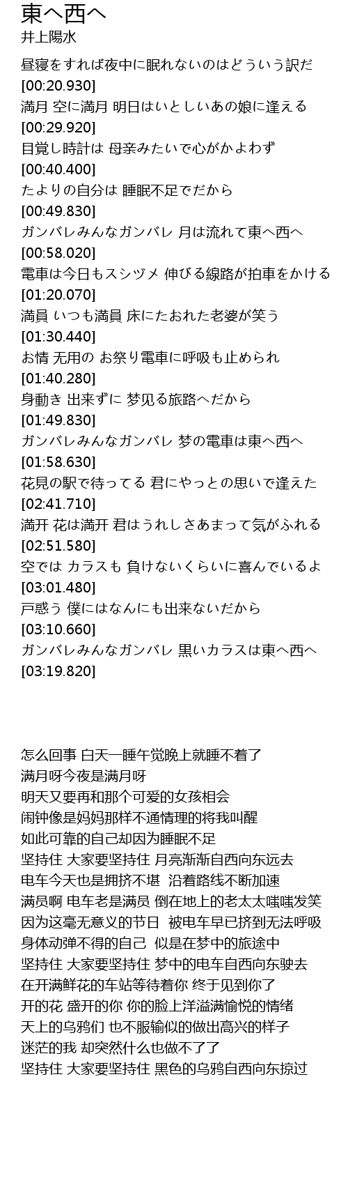 | [01:50.140] | 坚持住 大家要坚持住 梦中的电车自西向东驶去 |