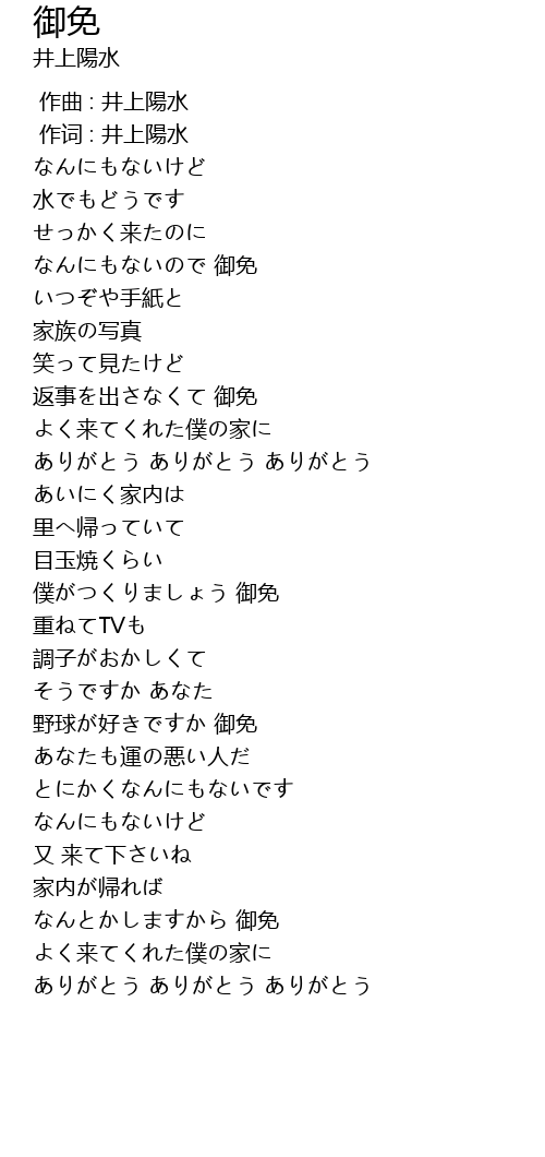 | [00:01.00] | 作词 : 井上陽水 |