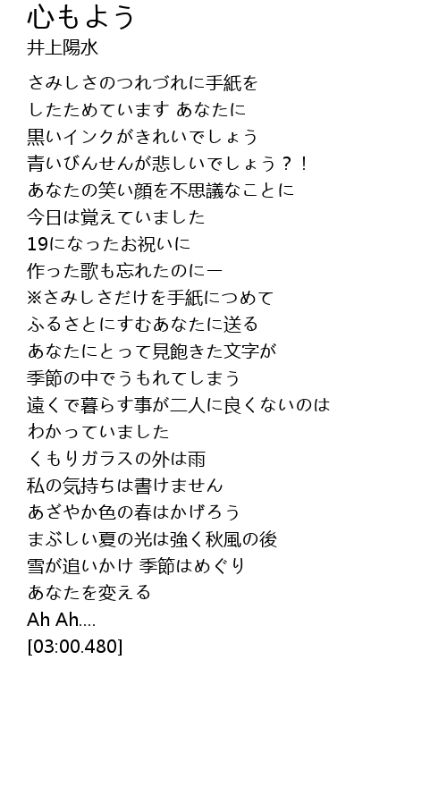 | [00:13.210] | さみしさのつれづれに手紙を |