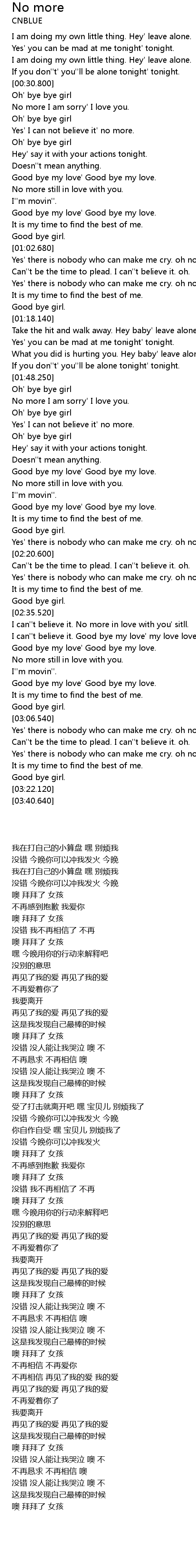 | [00:33.100] | No more I am sorry' I love you. |