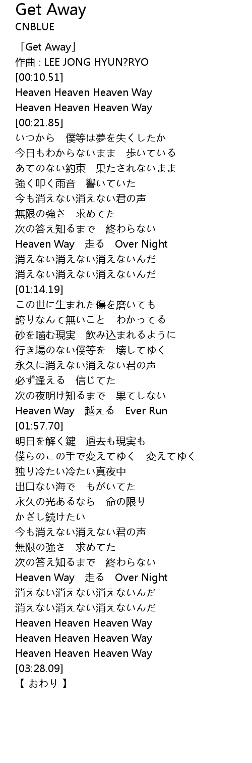 | [01:53.57] | Heaven Way 越える Ever Run |