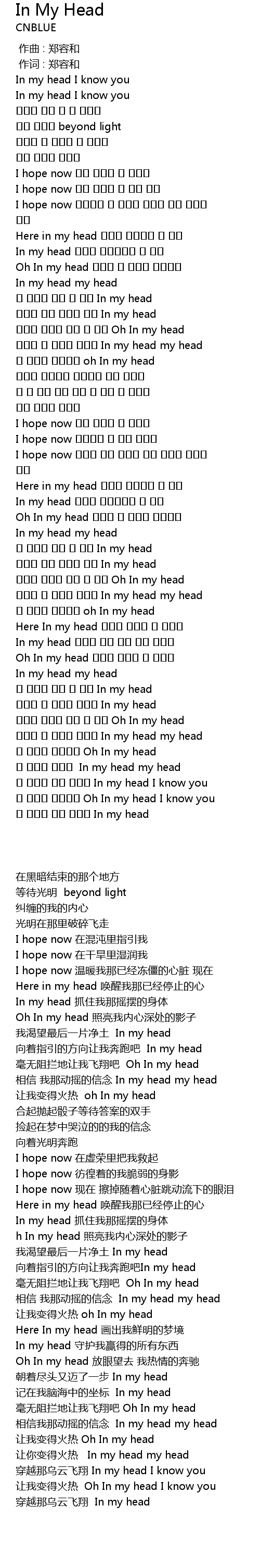 | [03:30.880] | 相信我那动摇的信念 In my head my head |