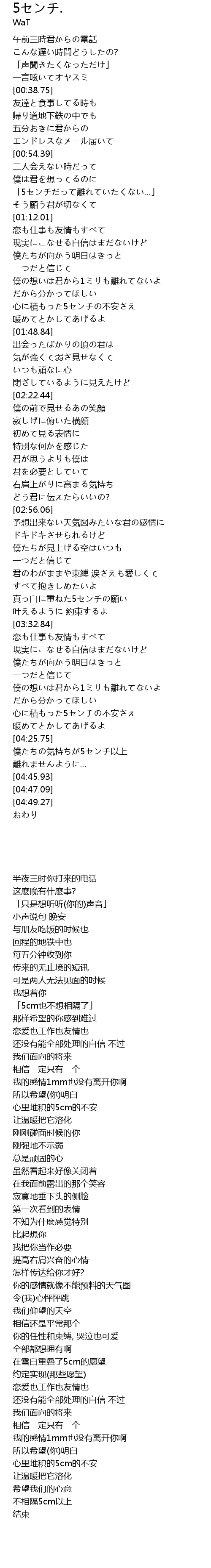 | [01:02.55] | 「5cm也不想相隔了」 |