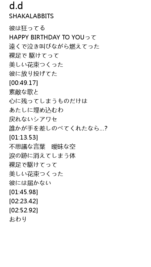 | [00:35.31] | HAPPY BIRTHDAY TO YOUって |