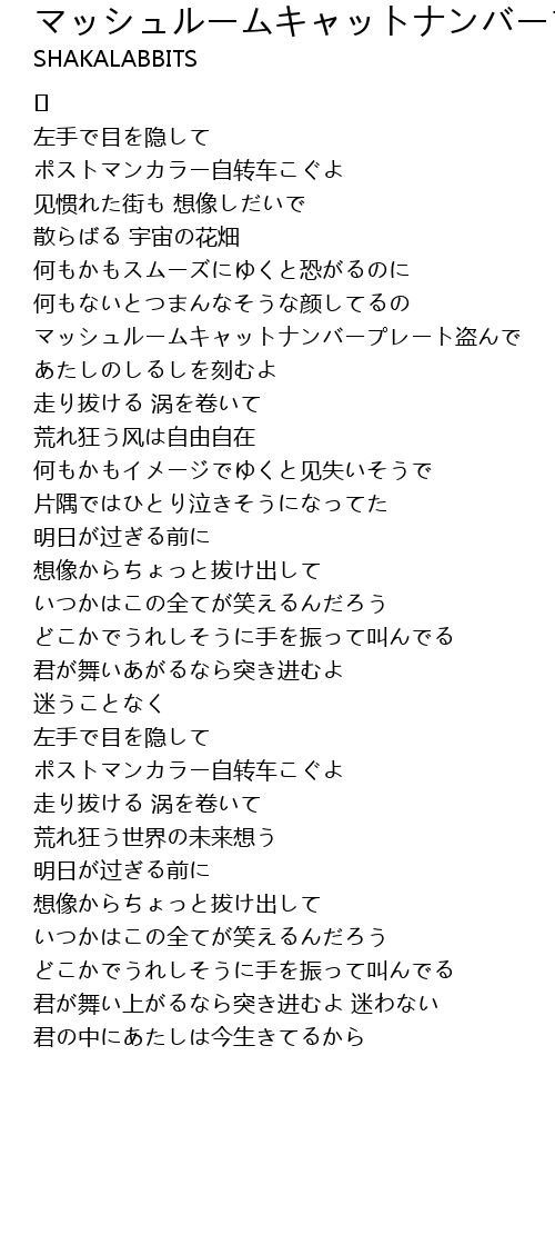 | 歌曲 | マッシュルームキャットナンバープレート |
