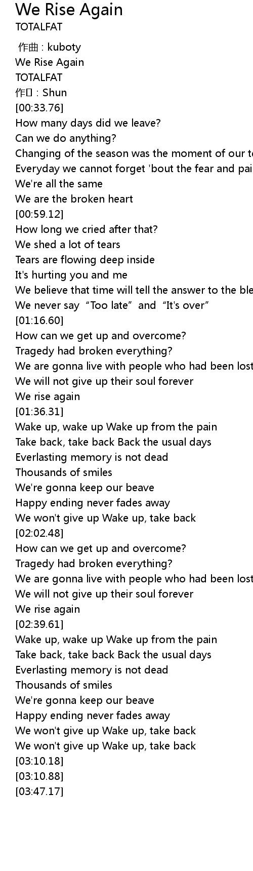 | [00:50.79] | Everyday we cannot forget ' bout the fear and pain |