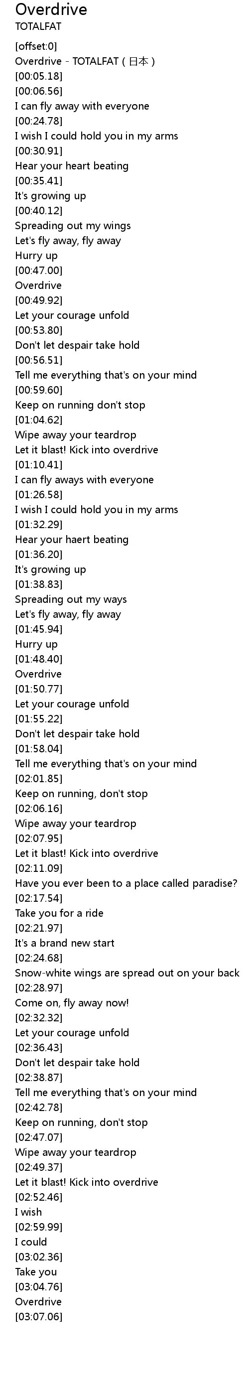| [00:01.78] | Overdrive - TOTALFAT(日本) |