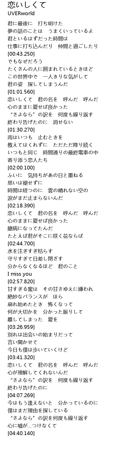 | [02:18.760] | 恋いしくて 君の名を 呼んだ 呼んだ |