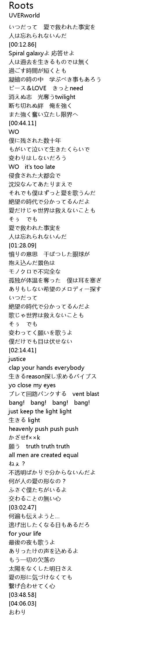 | [00:01.33] | いつだって 愛で救われた事実を |