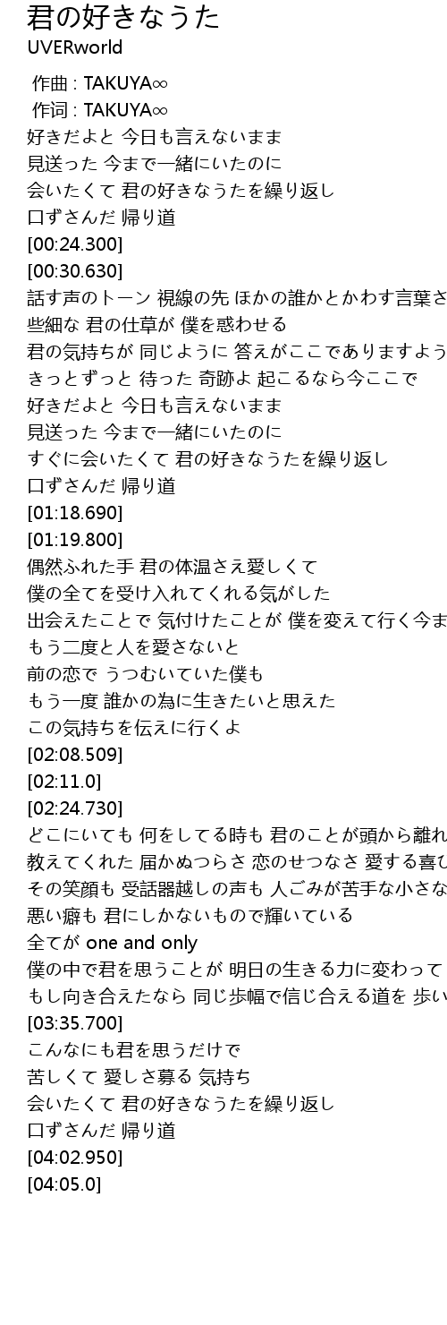 | [03:49.850] | 会いたくて 君の好きなうたを繰り返し |