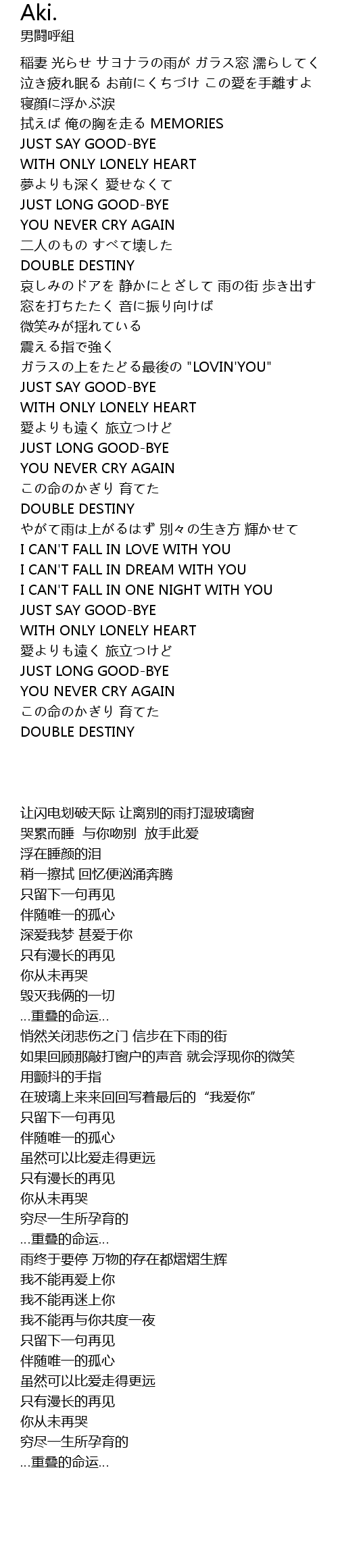 | [03:03.33] | YOU NEVER CRY AGAIN |