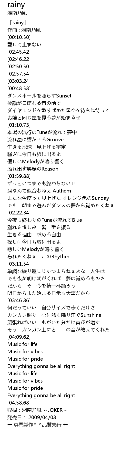 | [05:01.68] | 収録:湘南乃風 ~JOKER~ |
