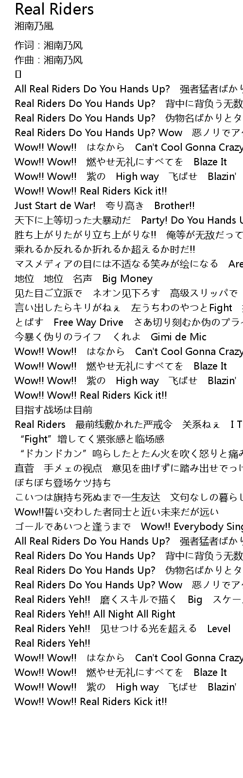| Real Riders Do You Hands Up? wěi wù míng | |